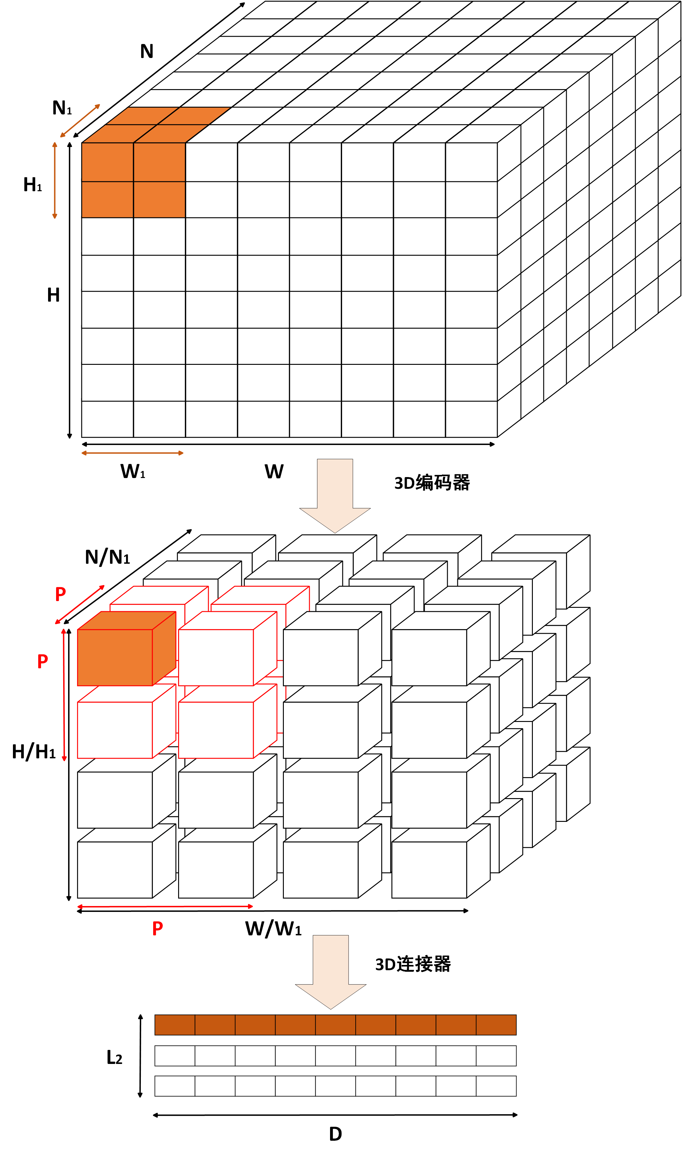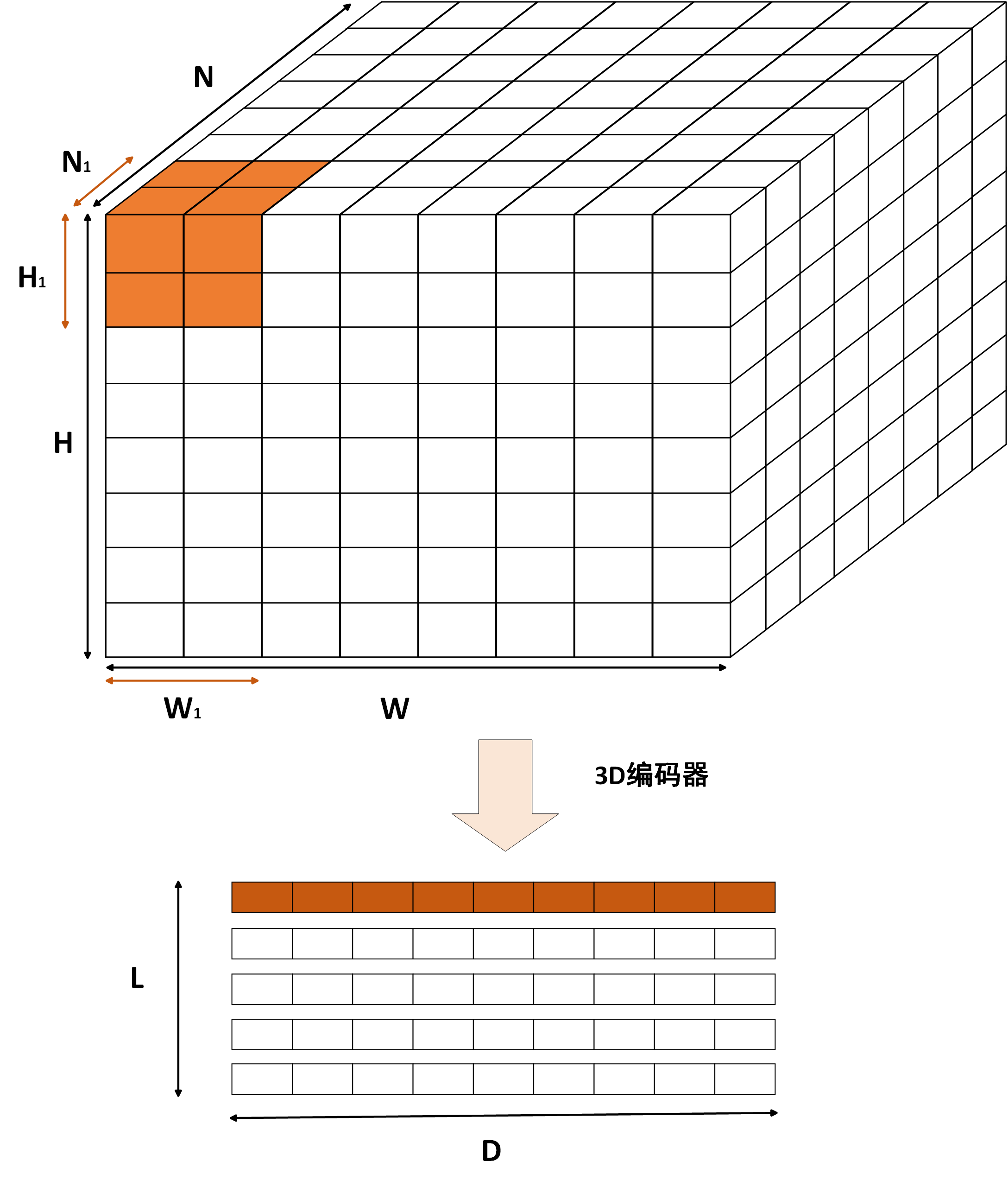 - 3D编码块输出$\boldsymbol{z_{3D}}$:$L_2 \times D$:$L_2$表示3D编码器的输出长度,$D$表示提取后的特征维度。