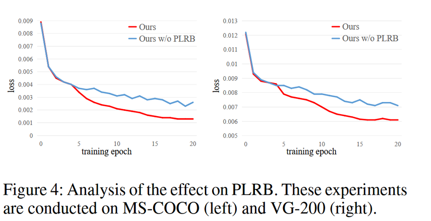 (结论)在 训练损失曲线可视化(图 4) 中可以看到:没有 PLRB → loss 波动明显(不稳定),加入 PLRB → loss 曲线更加平滑(训练稳定),根据之前的分析,PLRB 模块有助于生成稳定的融合表示,从而补充未知标签并使训练更加稳定。