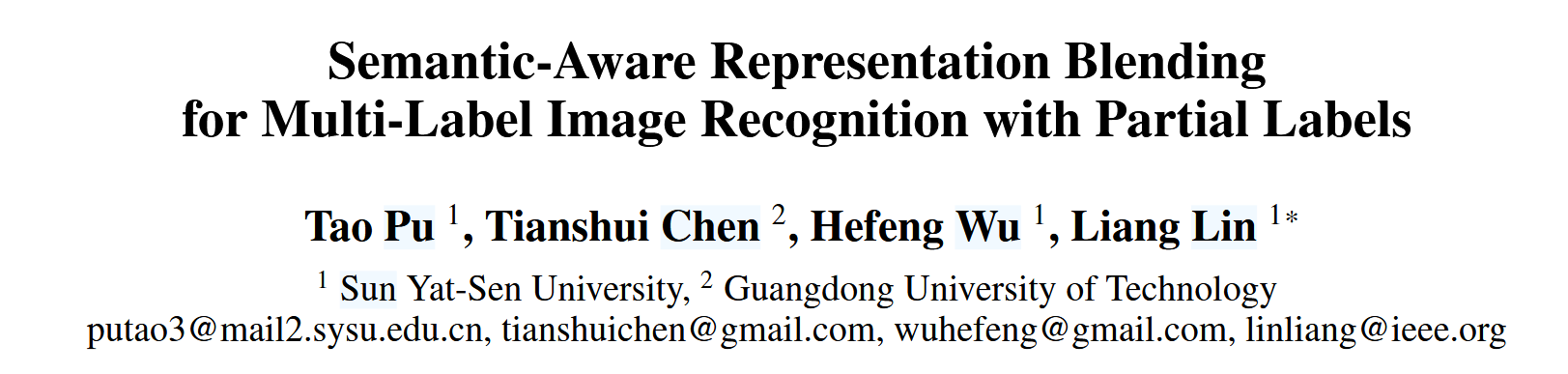 【论文阅读】:Semantic-Aware Representation Blending for Multi-Label Image Recognition with Partial Labels